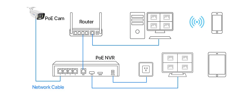 ● Hỗ trợ chuẩn kết nối POE thông qua Switch POE. (48V)