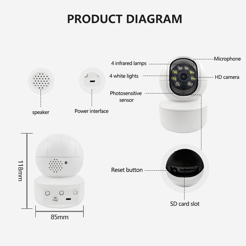 Được trang bị 4 đèn LED trắng và 8 đèn LED hồng ngoại hiệu suất cao, nó có thể cung cấp cho bạn hiệu ứng hình ảnh đầy màu sắc và độ nét cao bất kể ngày hay đêm.