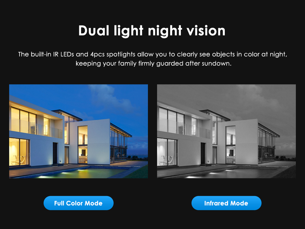 ● Góc quan sát cố định. Hỗ trợ 3 chế độ hình ảnh lựa chọn : Chế độ thông minh/ Chế độ hồng ngoại/ Chế độ màu.