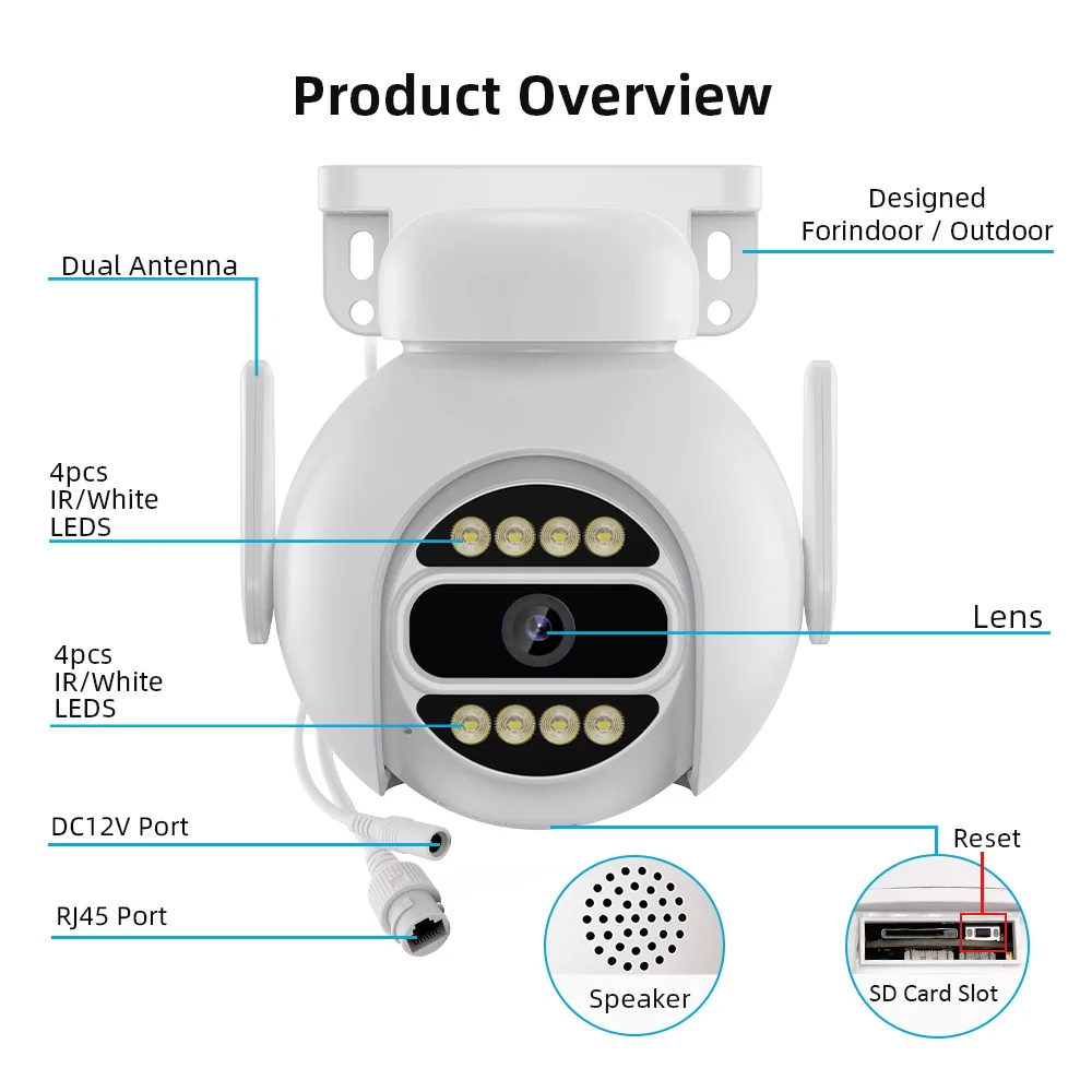 4MP 2K Dual Lens iCsee Wireless Cameras IP wifi Auto Tracking Motion detection WIFI IP Camera