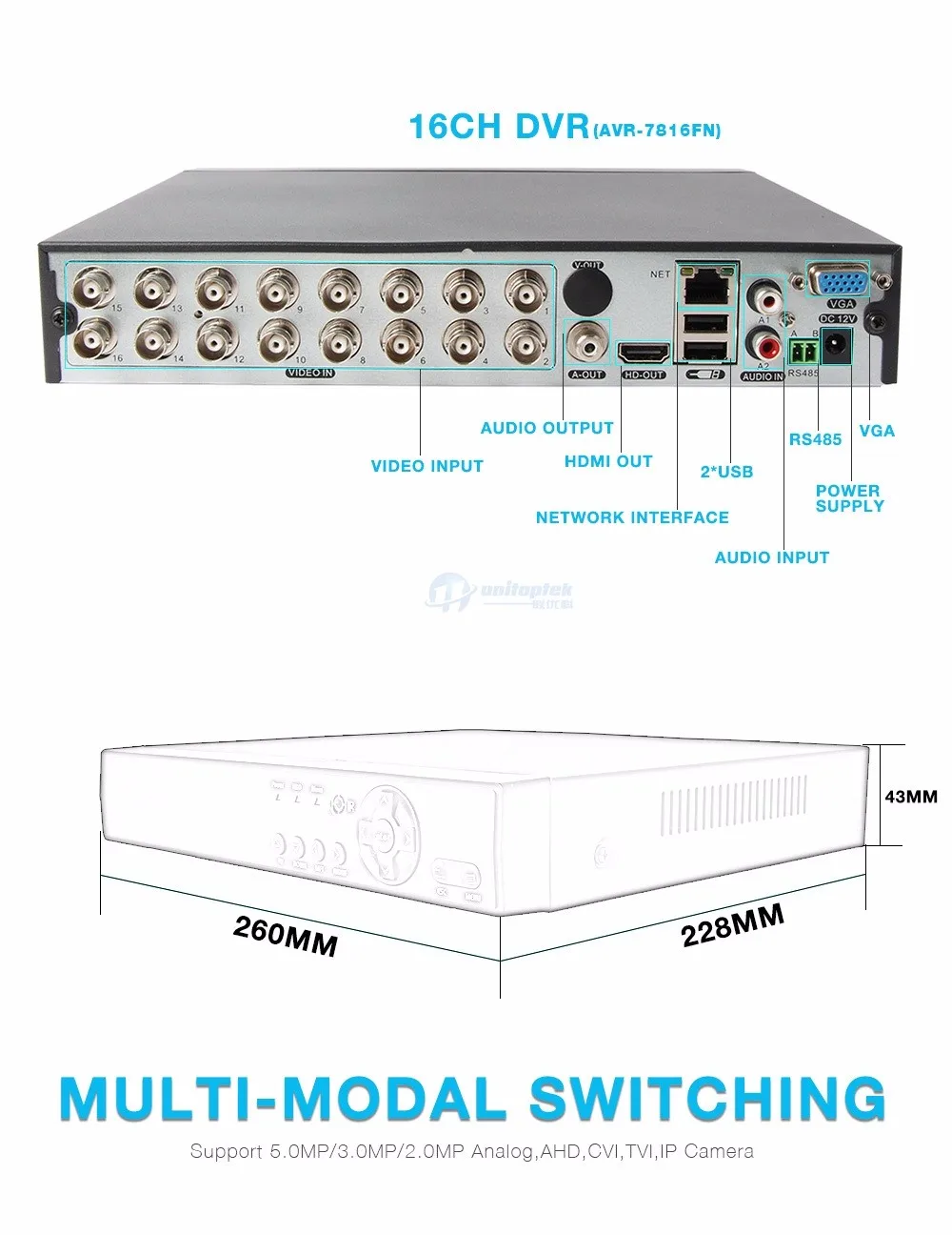 * 16 AHD 5MP : Xem lại 16 kênh.
