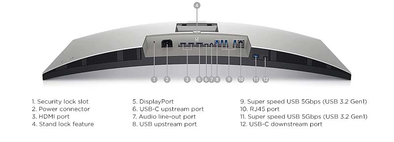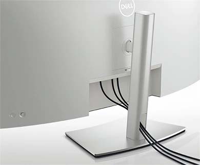 Góc làm việc gọn gàng Màn hình Dell UltraSharp U3821DW quản lý dây cáp thông mình, tránh sự lộn xộn để tối giản góc làm việc của bạn. |